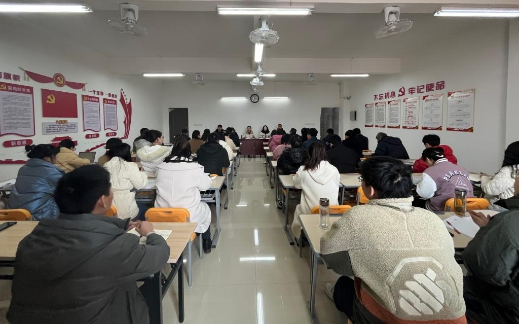 会议伊始,院长吴玲向全体教职工表达了新春祝福和关怀,并对本学期的新加入学院的教师做了介绍,表示欢迎。会议第一部分内容就是教学的业务培训,由院长助理陈志操和张珊进行。陈志操为各位老师进行了监考和阅卷相关工作的培训,其中对监考工作所涉及到的易出问题的环节进行了强调:一是严守纪律,以身作则。严格遵守考场纪律,按照监考规则完成各个环节工作,考试期间监考老师不得擅离职守,不做与监考无关的事情;二是公正监考,一视同仁。维护学生基本权益,确保考试公平公正;三是严守阅卷规则。保证遵守阅卷各项规则,实行教考分离流水批改,保证公平、准确、合规的进行阅卷、核分、复核工作。