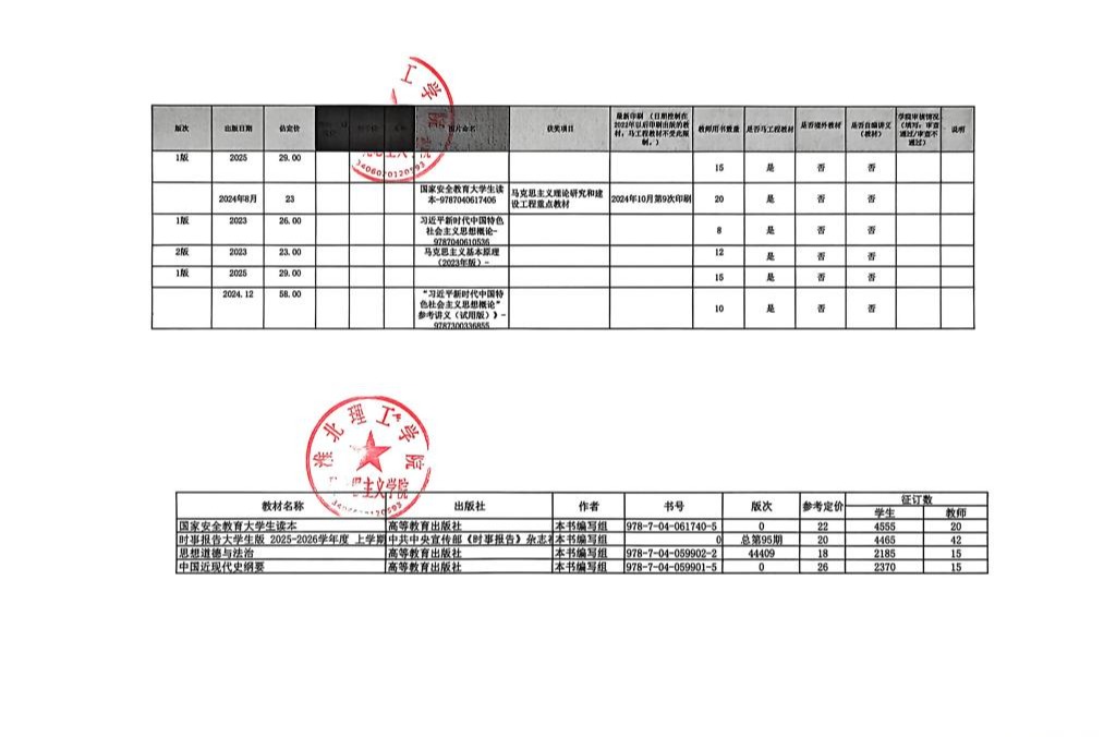 beat365中国唯一官网2025-2026学年第一学期教材选用情况公示