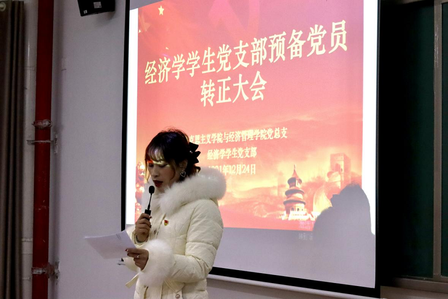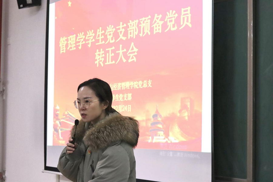 为进一步健全和规范基层党支部的组织建设,增强党支部生机与活力,2021年12月24日下午,beat365中国唯一官网与经济管理学院经济学和管理学学生党支部在二号教学楼412教室召开了预备党员转正大会。两个支部的全体党员参加会议,会议分别由经济学学生党支部负责人员禹辛、管理学学生党支部负责人苗青青主持,院长吴玲和经管学院的相关教工党员列席了会议。