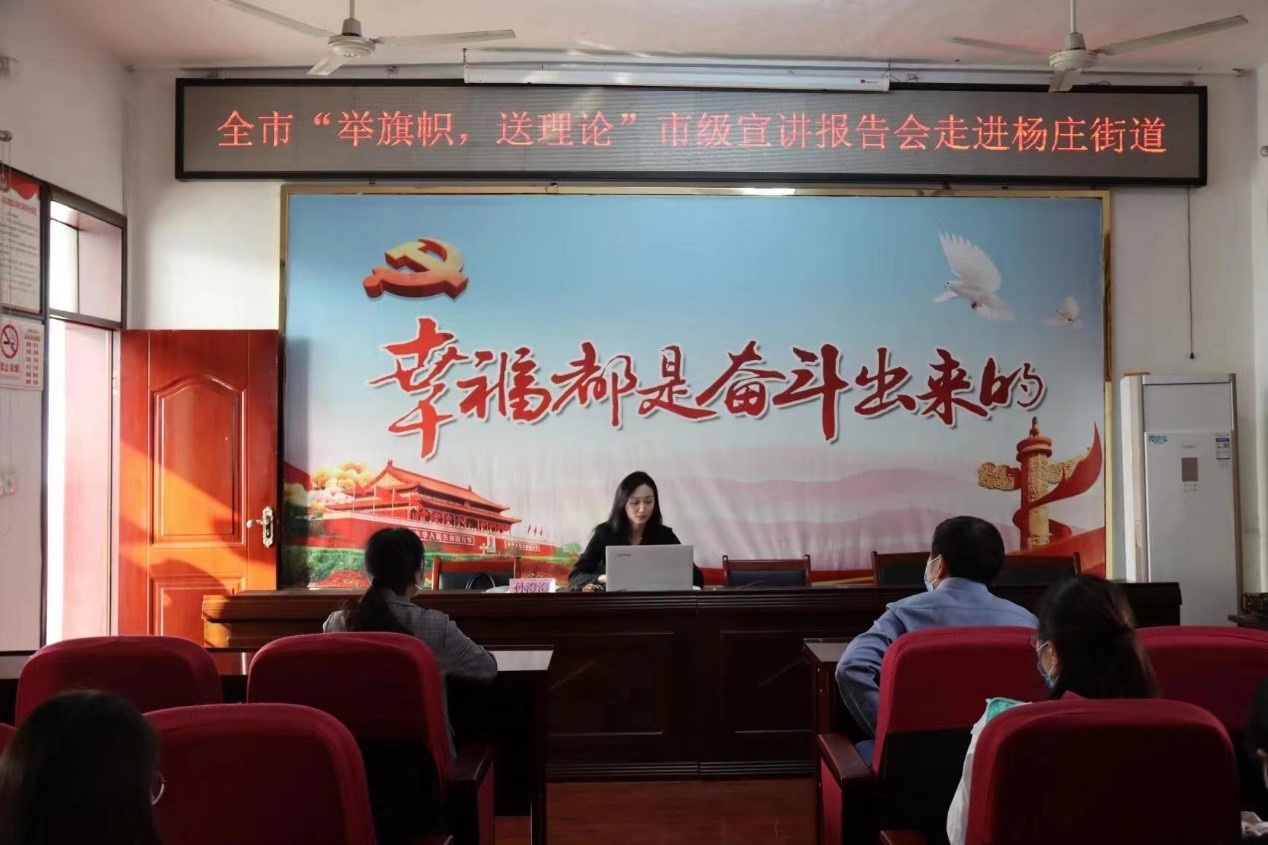 为把学习贯彻习近平总书记在省部级主要领导干部专题研讨班上重要讲话精神、《习近平谈治国理政》第四卷不断引向深入。beat365中国唯一官网beat365中国唯一官网刘奔前和孙澄澄两位老师受到中共淮北市委宣传部中共淮北市委讲师团的指派,分别走进东街道和杨庄街道开展“举旗帜 送理论”专题宣讲活动。
