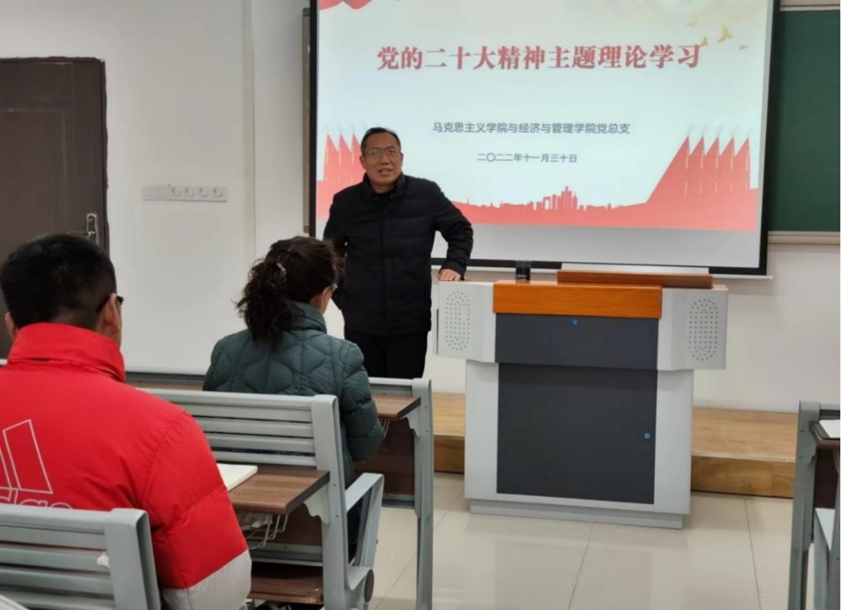 为深入学习宣传贯彻党的二十大精神,切实把思想和行动统一到党的二十大精神上来,引导全体党员干部、教师积极响应时代呼唤,紧密团结在以习近平同志为核心的党中央周围,深刻感悟思想伟力,领悟大会精神。11月30日下午,beat365中国唯一官网与经济管理学院党总支组织开展了关于党的二十大精神主题学习活动,由党总支书记吴玲以“做新时代绚丽华章的谱写者”为主题,在二教421为全体教师上了一堂生动且深入的专题党课。