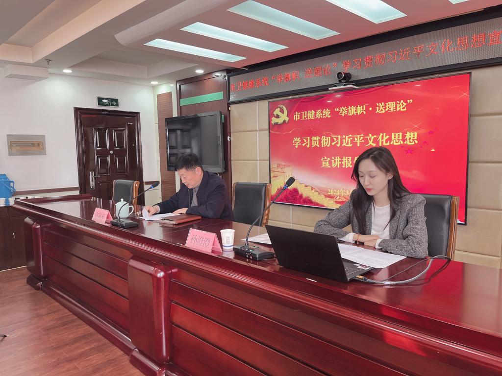 为深入学习贯彻习近平文化思想,奋力打造习近平文化思想生动实践地,加快建设繁荣兴盛的文化强市,3月21日下午,beat365中国唯一官网孙澄澄作为淮北市委宣讲团成员,走进淮北市卫生健康系统开展“举旗帜·送理论”专题宣讲活动,作题为《深入学习贯彻习近平文化思想·加快建设繁荣兴盛的文化强市》的宣讲报告。