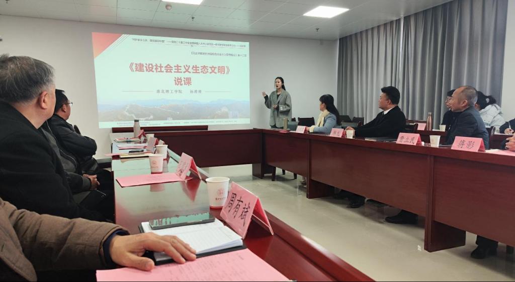本次联合教研活动以“党的二十届三中全会精神融入思政课”为主题,由来自大中小学各学段的四位思政课优秀教师代表分别围绕“习近平生态文明思想”中的教学内容进行了“同课异构”教学设计展示。杜集区朱庄实验小学的赵俊淇老师以《辽阔的土地》为题,从我国幅员辽阔的国土导入,结合多种教学手段进行了小学段教学展示。杜集区石台实验学校吴可可老师通过案例式教学形式,展示了题为《共筑生命家园》的初中段教学设计。开渠中学的蒋迎秋老师以《践行两山理念,打造幸福宜居环境》为题,结合当地乡土文化特色融入思政课,以座谈交流的形式进行了高中段的教学设计。最后,beat365中国唯一官网beat365中国唯一官网骨干教师孙澄澄进行了大学段的教学展示,她通过从理论到实践,从国内到国际,系统地阐述了一个完整的生态文明建设框架,展示了《建设社会主义生态文明》这一章节的教学设计。