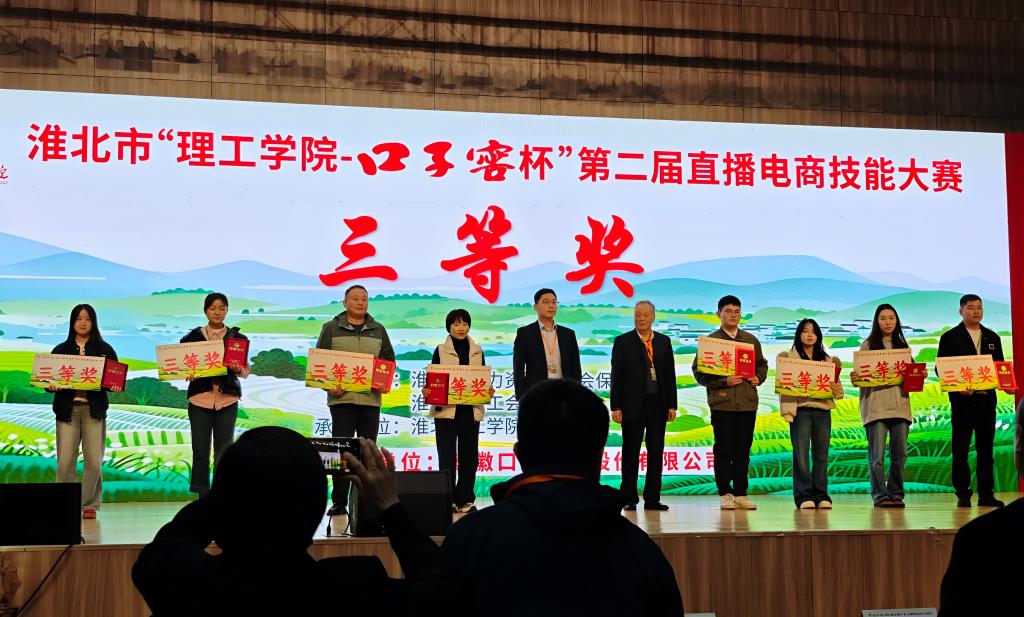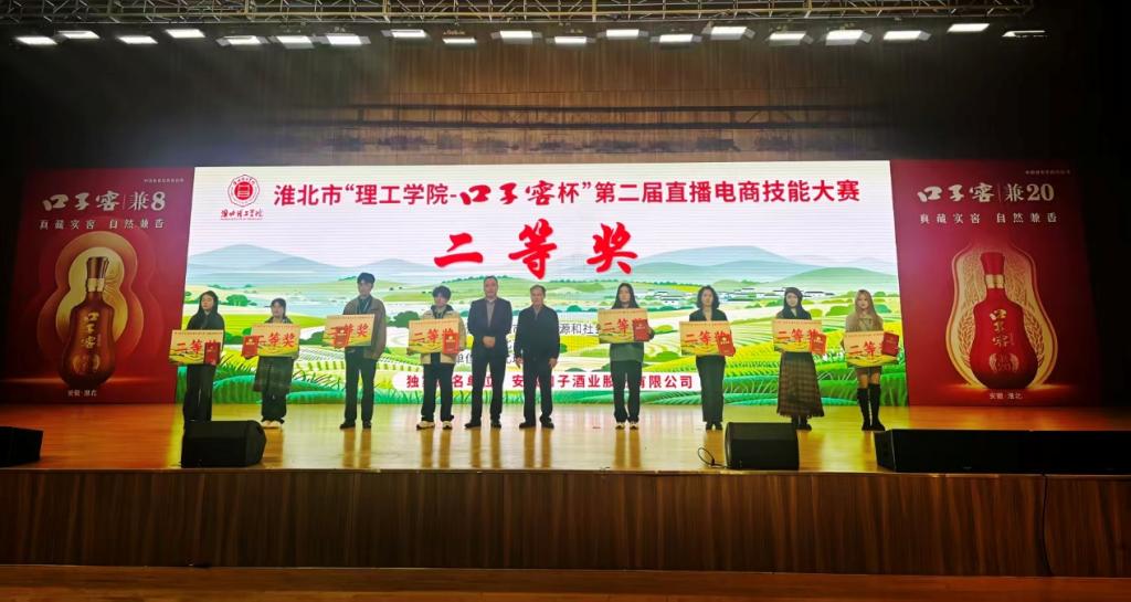 10月26日下午,淮北市“理工学院-口子窖杯”第二届直播电商技能大赛圆满落幕。beat365中国唯一官网以陈志操、徐新荣为队长,六位教师分别组合成淮理一束光和锦年新升两个团队历经初赛选拔成功突围,晋级决赛,并在决赛中斩获二等奖、三等奖的好成绩。