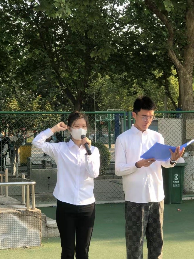 党旗所指,团旗所向。共青团是党联系青年的桥梁和纽带,是中国共产党的助手和后备军。沐浴着清晨的阳光,学生们身穿白衬衫,相聚在鲜艳的团旗下,举行庄重而严肃的入团宣誓仪式。主持人激昂的演讲,将学生们的情感与气氛推向高潮。在宣誓人刘佳昕的带领下紧握右拳,庄重宣誓“我志愿加入中国共产主义青年团,坚决拥护中国共产党的领导,遵守团的章程,执行团的决议,履行团员义务,严守团的纪律,勤奋学习,积极工作,吃苦在前,享受在后,为共产主义事业而奋斗。”庄严的誓词承载着作为团员的神圣使命,在此重温入团誓词,让学生们重温作为团员的光荣责任与崇高誓言,以不断激励与鞭策学生们践行团员使命,用更高要求约束自己,去共担时代重任、共赴崭新前程。