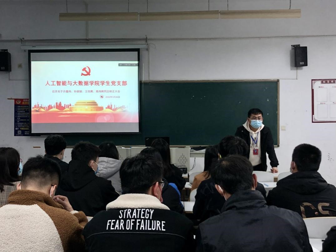 为进一步加强学生党员队伍建设,积极推进kaiyun官方网站入口开云kaiyun官方网站党建工作,2022年3月24日晚19:00,开云kaiyun官方网站2022年上半年学生党支部预备党员转正大会于主教104教室召开,讨论关于许鑫伟、孙丽丽、王佳爽、高伟辉4位预备党员申请转为正式党员事宜。此次会议由学院党总支书记、学管副院长尹钧主持,学生支部全体教师党员与学生党员参加此次会议,会议采用了线上、线下结合的方式进行。