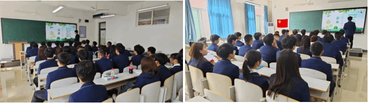 会议伊始,主讲人首先带领全体学生起立唱团歌,然后依据PPT,从六部分为学生们介绍植树节。习近平总书记号召:“绿水青山就是金山银山”,我们广大青年应该积极响应国家号召,努力投身于“护绿”“增绿”“活绿”的生态文明建设活动中。随后主讲人讲述到植树节的历史渊源与来历,早在1915年清明节时,孙中山就提出了植树造林,并每年都在这个日期植树造林,而后为纪念孙中山先生的逝世,将日期改在了3月12日。在新中国成立后,正式将3月12日作为植树节。会议最后组织学生们观看了有关植树节的视频,使学生们对植树造林的深远影响有了更多的了解。除了传统的义务植树、参与生态保护志愿活动外,也可以通过互联网平台发起网络植树活动、环保公益项目众筹等方式,为更多人提供参与的便捷途径,让更多人加入到植树造林的活动中。