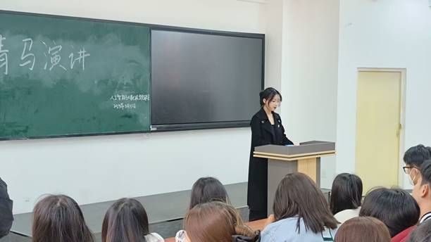 本次演讲主题不限,可以是青马学习的感受也可以是其他积极向上的主题,学生们积极分享自己的所感所想,数十名学生主动展现自我,上台进行了演讲。每名上台演讲的学生都提前做好了充分的准备,对于演讲主题的选择也是丰富多样,有关于追求梦想的、自我发展的、还有关于人生规划的,很多内容都深深的引起了台下学生的共鸣。演讲过程也不乏乐趣,学生们认真倾听,积极与演讲者互动,氛围十分活跃。青马培训班是促进学生干部全方位发展,培养学生干部的沟通表达、创新管理等能力的组织。通过学生们的感受分享,可以感受到进行了一周青马培训的学生们的变化,每一名学员都得到了进步。罗振宇曾说:“如果你实在找不到一个领域去跨界,那么就去演讲。”虽然每位学生的演讲只有短短的几分钟,但也提高了演讲者本身的心理素质和语言组织能力。