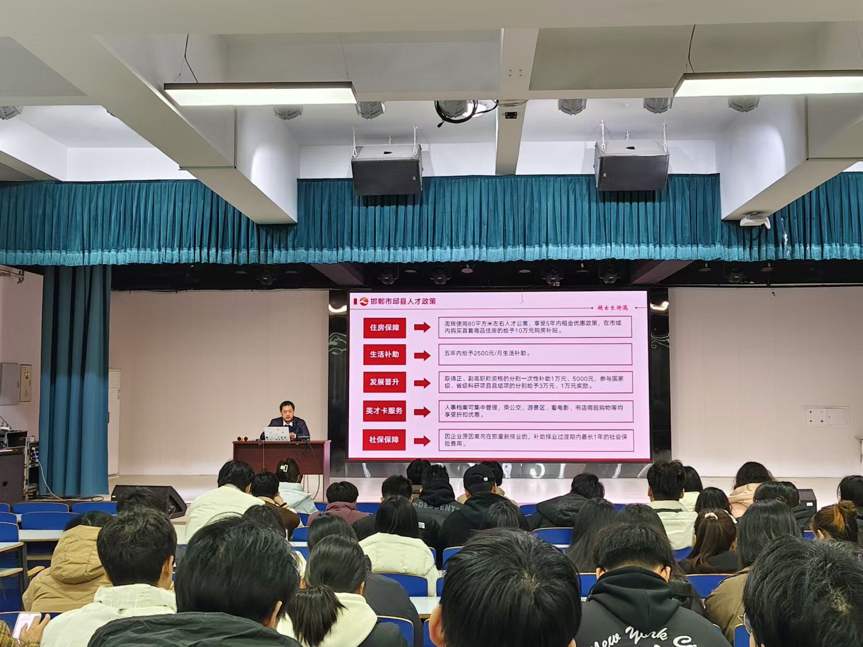 为了深入贯彻落实人才强市战略,搭建高校与地方人才交流的桥梁,开云于2024年12月13日在次教101开展了邯郸人才政策的宣讲活动,此次活动由邯郸市邱县人社局高军主持,活动吸引了众多学子的积极参与。