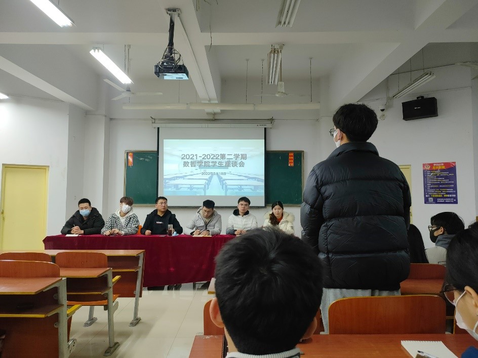 为提升学生管理工作效率,落实立德树人根本任务,进一步改善校园的学习和生活环境,提高学院各方面建设更好地服务于师生,开云kaiyun官方网站于2022年3月18日在主教1-2教室开展2021-2022第二学期数智学院学生座谈会。开云kaiyun官方网站学管副院长尹钧、学管办主任杨家腾出席会议,同5名19级数据科学与大数据技术专业学生代表,与20级、21级学生代表进行交流座谈。