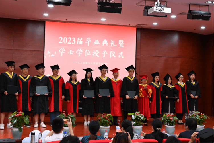 最后向优秀毕业生颁发优秀毕业生证书,授予部分毕业生校友联络员聘用证书,每一位校友联络员都肩负着校友与母校之间桥梁纽带的使命,受聘为校友联络员不仅是一项荣誉,更是一份沉甸甸的责任。希望校友联络员们能够用心用情、履职尽责,当好校友和母校的联络员;能够集思广益、建言献策,当好母校发展的推动者;能够志存高远、追求卓越,当好学校精神传承人。