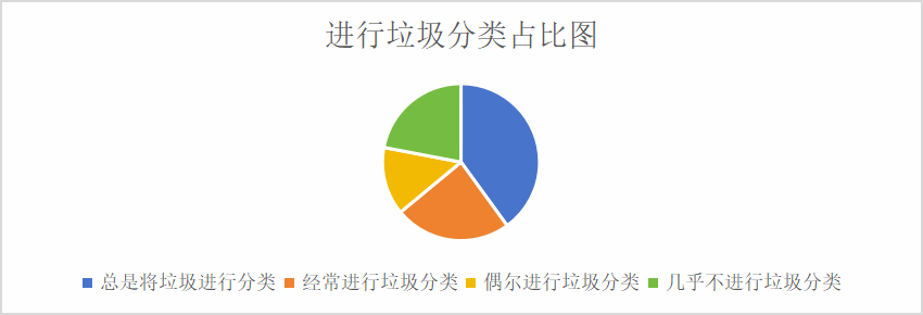经调查,40%的人总是会将垃圾进行分类,24%的人会经常进行垃圾分类,14%的人偶尔进行垃圾分类,而有22%的人会将垃圾随意丢放,不进行垃圾分类。这更加说明了本次垃圾分类社会实践活动开展的意义所在。