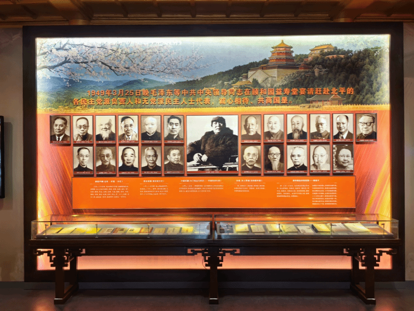 第一个展厅是“古园新生”,介绍了颐和园的来世今生。第二个展厅是“宴集群贤”,原景复原和多媒体相结合,让游客沉浸式体验当时宴请民主人士的场景。第三个展览是“肝胆相照”,用大量的照片和文献展示了益寿堂晚宴上的民主人士参与新政协筹备等相关内容。