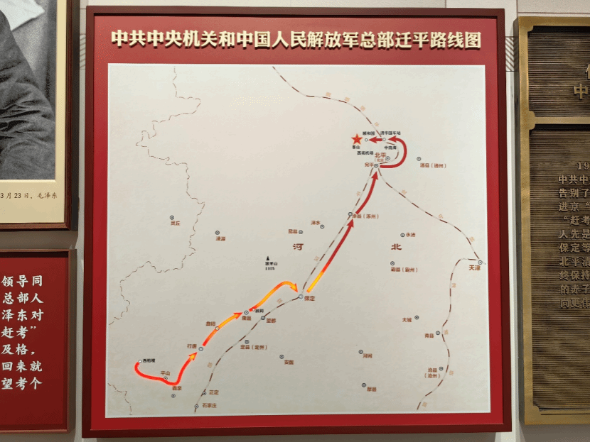 1949年3月23日,毛泽东、朱德、刘少奇、周恩来、任弼时等党中央领导人率领中共中央及其所属机构,从西柏坡踏上了“进京赶考”的新征程。途径唐县、保定市区等地后,3月24日傍晚,毛主席一行乘车抵达涿县,也就是现在的涿州市,在这里度过了共产党“进京赶考”前的最后一晚。