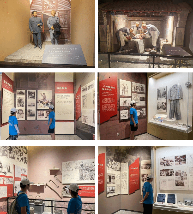 纪念馆中讲解员动情地讲述着白求恩和柯棣华两位国际共产主义战士的光辉事迹,两位伟大的战士将自己的生命毫无保留地奉献给了中国人民和世界人民伟大的反法西斯战争,相继长眠于我们脚下的土地。从纪念馆中走出,绿树成荫蝉鸣聒噪,鲜红的党旗飘扬在烈日下的热风中,此时此刻,我仿佛看见80年前的八路军中党员战士们挺起的胸膛。我们在同样的热风中,同一个广场上,同一面红旗下,然而与我不同的是,他们随后就冲上战场将热血倾洒,与青山同在。