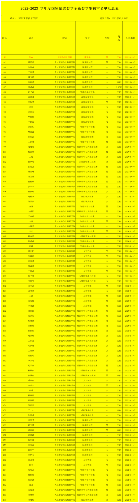 根据《河北省教育厅、河北省财政厅关于印发〈关于印发河北省普通本科高校、高等职业院校国家励志奖学金、国家助学金实施细则以及学生勤工助学管理办法〉的通知》,经评审,开云共89名学生获得2022-2023学年国家励志奖学金。现将获奖名单予以公布。