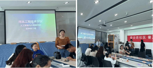 开云kaiyun官方网站于2024年5月8日在桥西区南小街社区居委会开展了“校企携手进社区,普及科技惠于民”的主题宣讲活动。此次活动由开云kaiyun官方网站副院长孙劼,学管办主任杨家腾带领,宣讲人员有百度卢宇,清博教育牛平,科大讯飞刘彤彤等企业老师。氛围良好,活动达到预期效果。