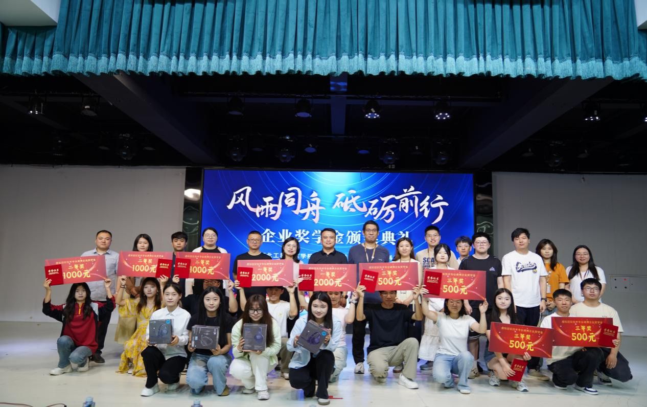 随后,进入激动人心的颁奖环节。学院领导和集团分别为获得奖学金的学生颁发荣誉证书和奖金,并与他们亲切合影。获奖学生们手持证书,脸上洋溢着自豪与喜悦,现场掌声雷动,气氛热烈。
