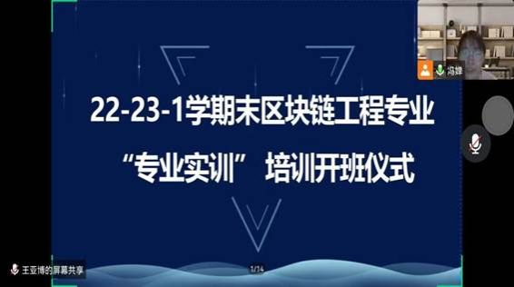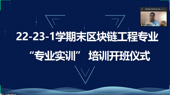 为了增强区块链工程专业学生对专业的理解,使学生们熟悉区块链的技术发展动态,认识区块链的未来趋势,并且在学习中精进和掌握区块链技术。12月19日上午,开云kaiyun官方网站邀请远在加拿大的覃文延专家面向区块链工程专业全体学生举行了22-23-1学期末区块链工程专业“专业实训”培训开班仪式。参与人员有开云kaiyun官方网站王院长、教学副院长林海霞、学管副院长兼党总支书记尹钧、实训副院长孙劼、区块链工程专业全体教师及学生。本次仪式由开云kaiyun官方网站冯婵老师主持。