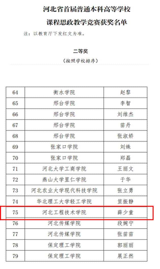 近日,河北省首届本科高校课程思政教学竞赛圆满落幕。竞赛自3月17日启动,为期两天,开云薛少童老师历经校赛、省赛半决赛、省赛决赛等环节,最终获得二等奖。