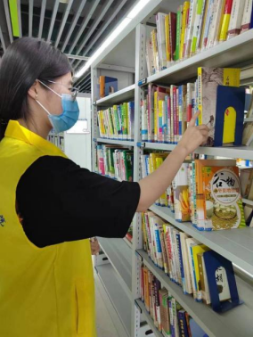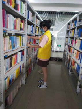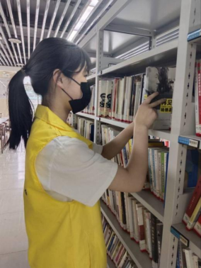 志愿者们整理书架上的书籍和将归还的图书归位,不仅如此,志愿者还需要为读者寻找图书,维护阅览区秩序。其中排书并整理错书是一项脑力活动兼体力活动的工作,志愿者们不仅需要熟悉书架的位置与书目的与排列顺序,还要及时发现错书并归放到其正确的位置上去。同学们的耐心和细致受到了管理员的一致好评。
