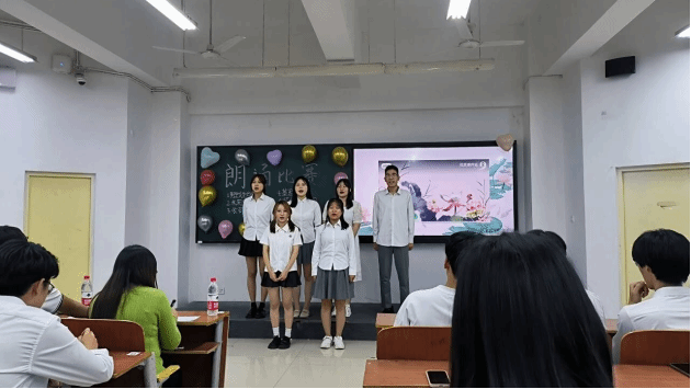 生活再卑微,也可以拥有高洁的生命。5组同学带来的《陋室铭》全文虽然只有短短八十一个字,但他们朗诵感情饱满,读出了诗豪刘禹锡的乐观豁达,积极向上。