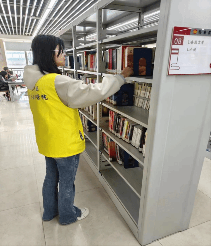 志愿者们在知识的熏陶下积极参与工作,到达不同的岗位后,在相关工作人员的指导下,深入了解自己的具体职责,学生们按照顺序摆放书籍,以认真负责的态度在相关区域内开展工作,志愿者们体会到了图书馆工作者的辛苦,也践行了奉行的真谛。
