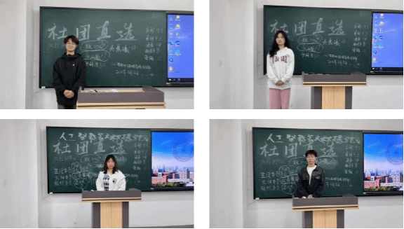 伴随着团员们高昂的团歌声,本次直选大会正式开始。在团总支学生副书记讲解了选举的重要性以及竞选活动流程要求后,想要竞选团务部执行副书记和团务部组织、宣传、文体委员的学生依次上台进行了发言。每一位上台的学生都用自己的言语表达了对未来工作的展望,不论选上与否,都将努力为社团贡献自己的力量。待备选人员演讲完毕后,通过QQ群里面对面投票的方式,最终确定魏印旭、张函毓为新一届的团务部执行副书记,李文杰、赵晨曦、华垚分别担任新一届团务部组织委员、文体委员、宣传委员。直选完成后各职务代表站在团旗前进行拍照留影。