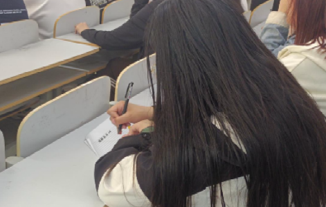 活动现场学生在做心理问题调查问卷