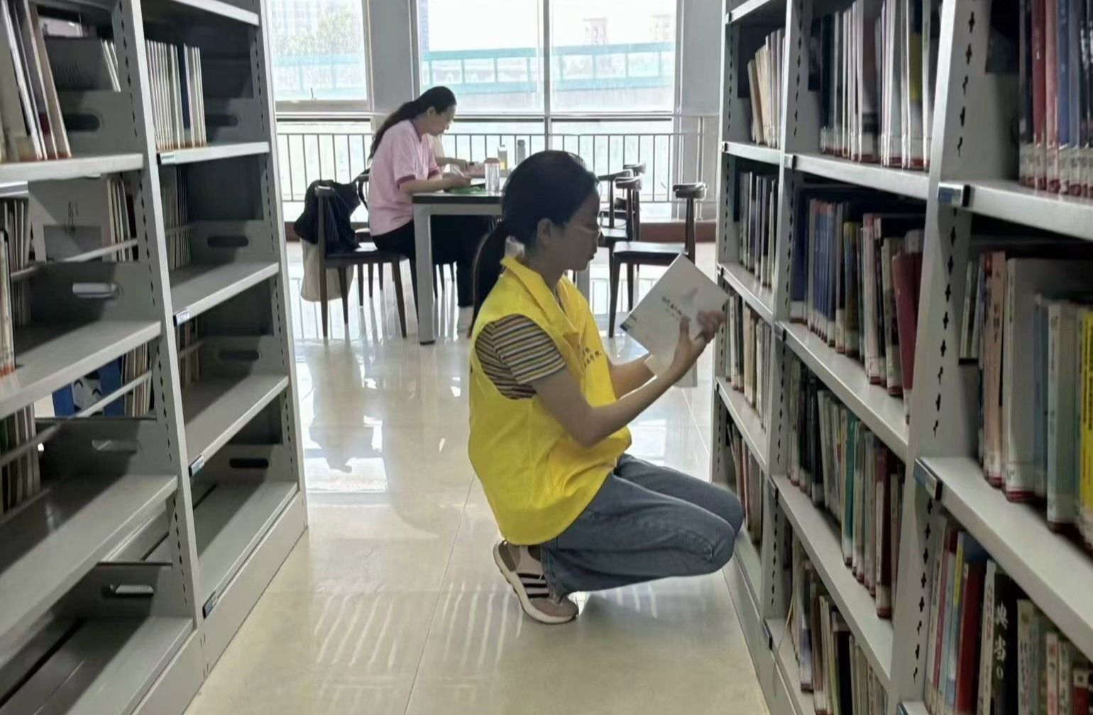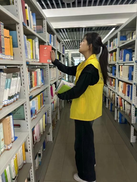 志愿者们在图书馆中整理图书,帮助借阅的人们查询图书,这不仅减轻了图书管理员的负担,也提升了沟通交流的能力。虽然图书馆的志愿活动有时很枯燥,但是志愿者们仍积极地去做,认真的去做,在劳动中不断提高效率。