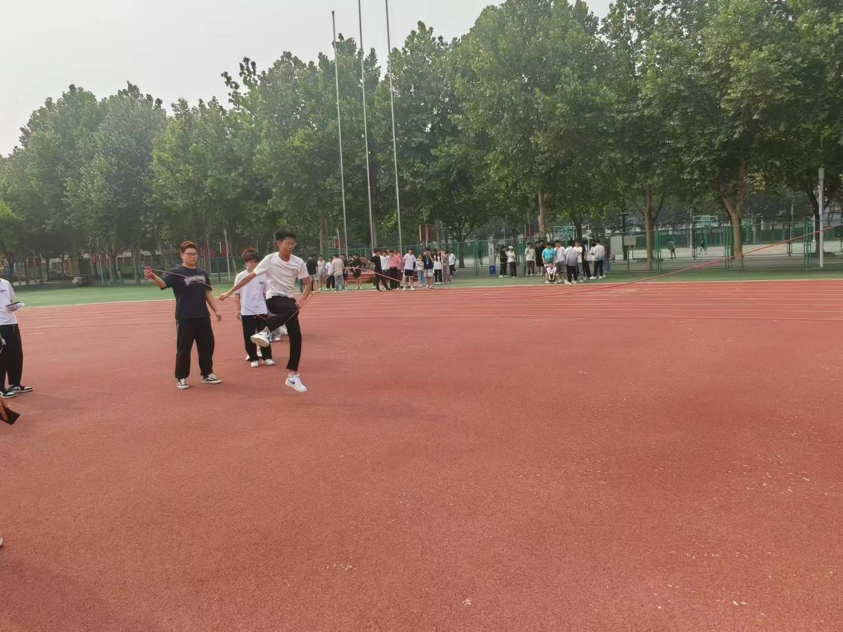 活动现场,学生被分为八人一组的团队,以八字大绳的形式进行比赛。随着裁判的一声令下,各组队员迅速进入状态,学生们紧密配合,协调步伐,每一次跳绳都凝聚着团队的智慧和力量。比赛现场气氛热烈,掌声、欢呼声此起彼伏,充分展现了学生们的竞技风采和团队合作精神。