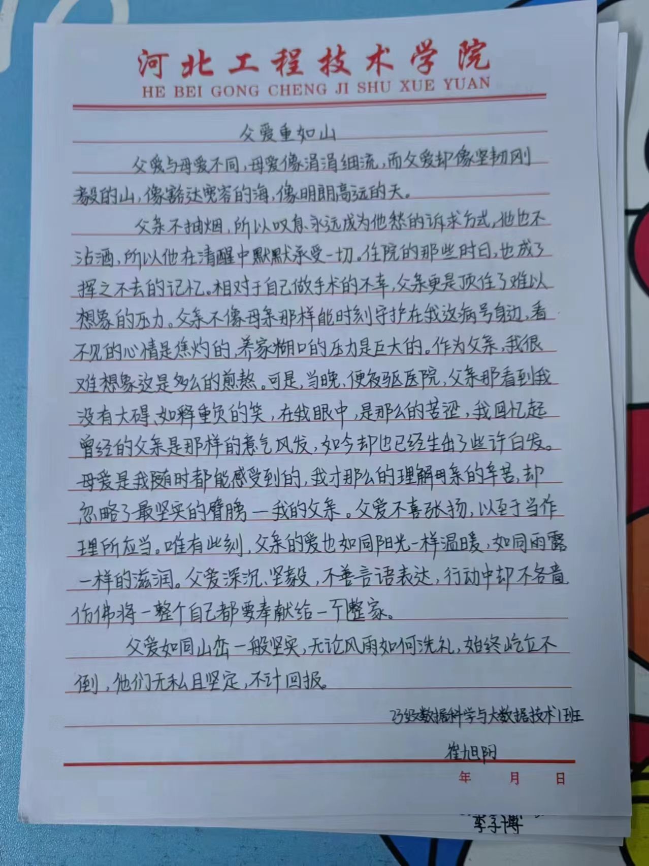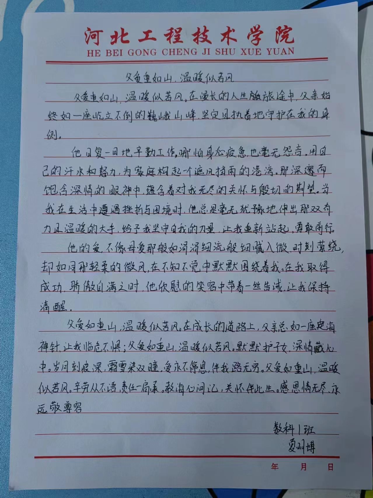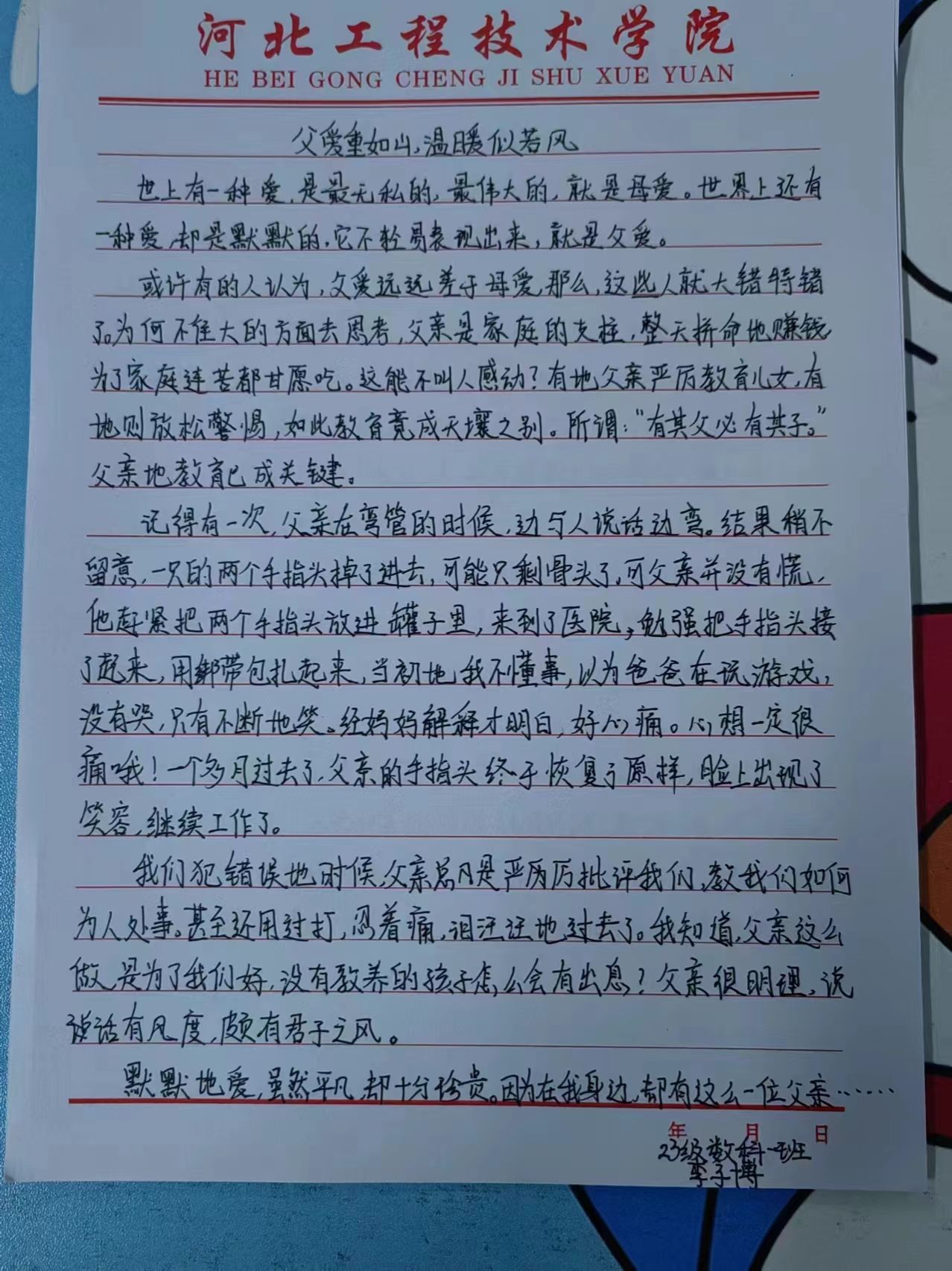 此次活动旨在通过收集和分享学生们与父亲之间的真实故事,展现父爱的深沉与温暖,传递家庭幸福的正能量。活动一经启动,便得到了学院学生的热烈响应。大家踊跃参与,纷纷将自己与父亲的珍贵记忆和感人故事上传至活动平台。这些故事中,有的讲述了父亲在自己成长道路上的默默付出,还有的回忆了与父亲共同度过的美好时光。每一个故事都充满了情感的温度,让每一位读者都能深刻感受到父爱的力量。
