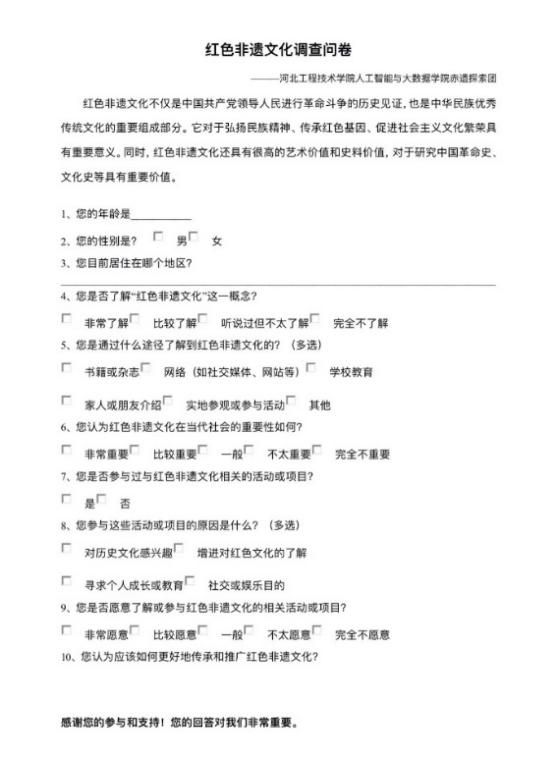 习近平总书记强调,“文化是一个国家、一个民族的灵魂。文化兴国运兴,文化强民族强。没有高度的文化自信,没有文化的繁荣兴盛,就没有中华民族伟大复兴。”为了传承历史文化的珍贵财富,kaiyun官方网站入口赤遗探索团于7月1日准备开展暑期实践活动,探寻非遗文化的精髓。本次活动的主题是“探寻非遗之美,弘扬华夏之魂”,此次活动旨在传播和弘扬我国丰富多彩的非物质文化遗产,激发青年一代对非遗文化的热爱。通过这次调研学习,志愿者们深刻认识到文化传承的责任和使命,为推动中华优秀传统文化的传承发展贡献一份力量,让非遗文化在新时代焕发出新的生机与活力。