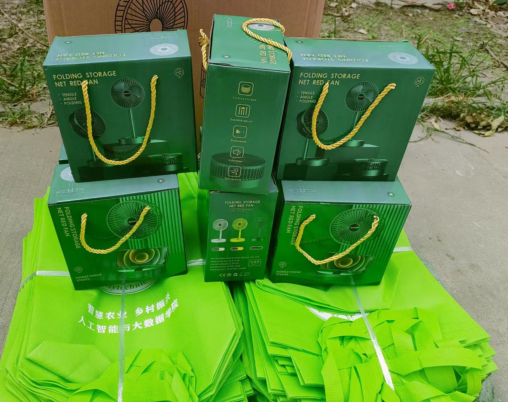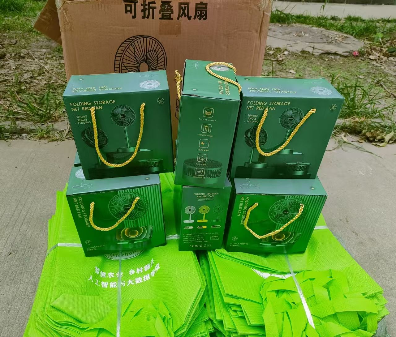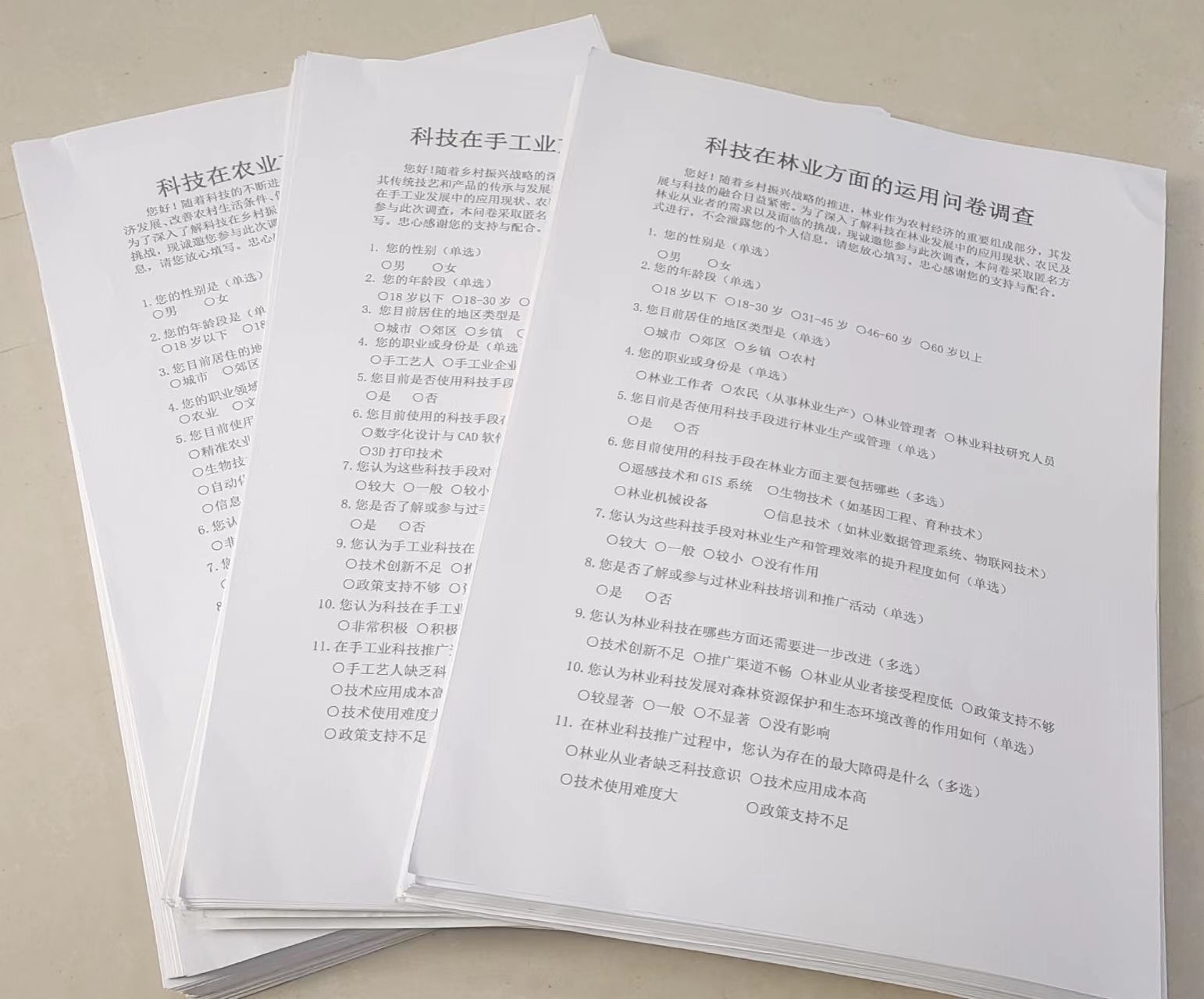 准备工作二:开云kaiyun官方网站乡村智慧“星”暑期社会实践团队队长张宁静制作了调查问卷,旨在了解农民对于科技在农业、林业、手工业方面的应用程度,从而更好开展乡村振兴有关政策的宣传,增加农民的知识储备,指导老师刘蕾为调动农民参与问卷调查的积极性和为我们讲解科技在乡村振兴的运用的农民准备了帆布包和小风扇等礼品,指导老师潘亚静定制了宣传语为“以科技为指引,探寻乡村振兴之路”的条幅。