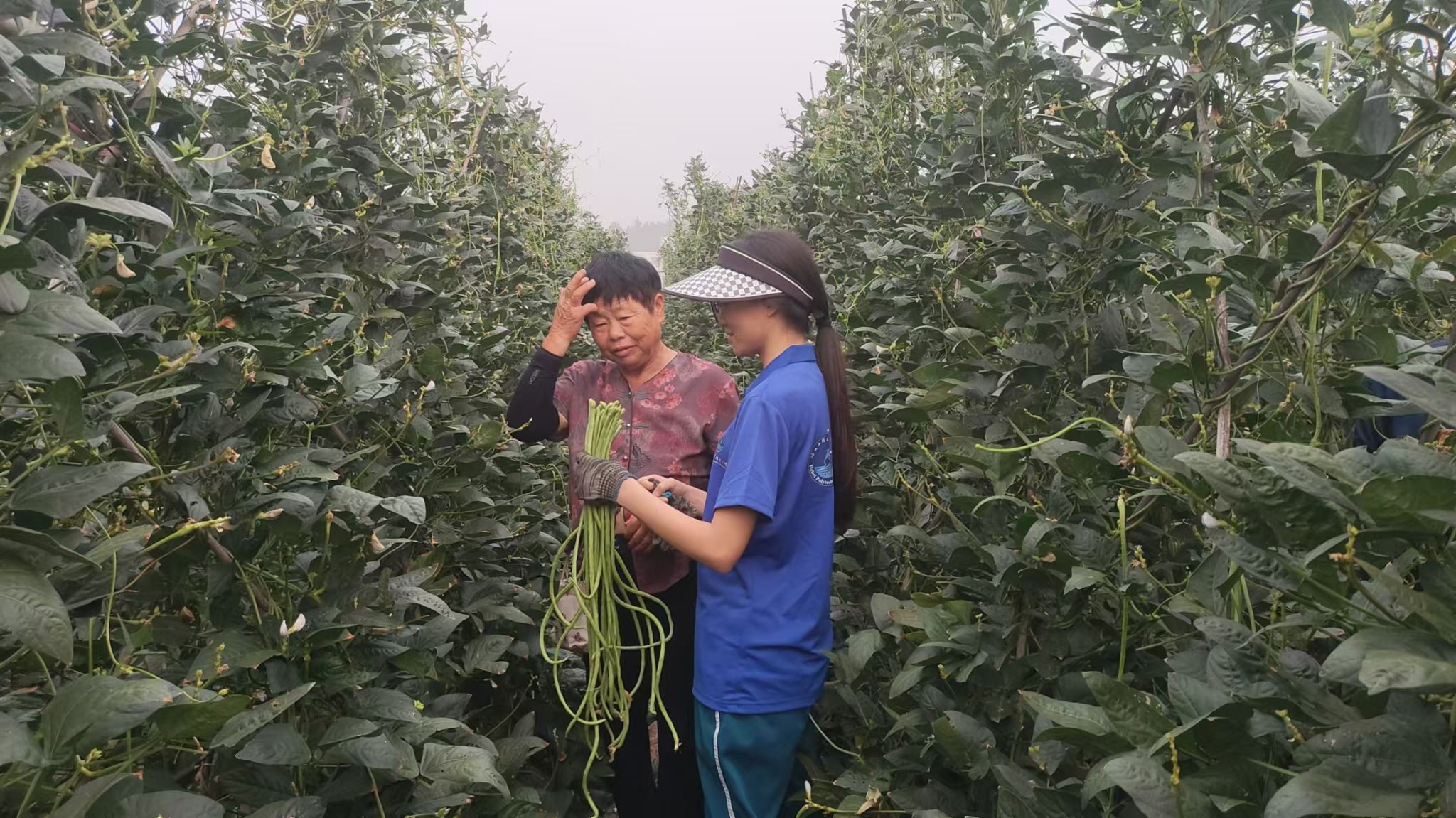 团队成员与农业种植户交流