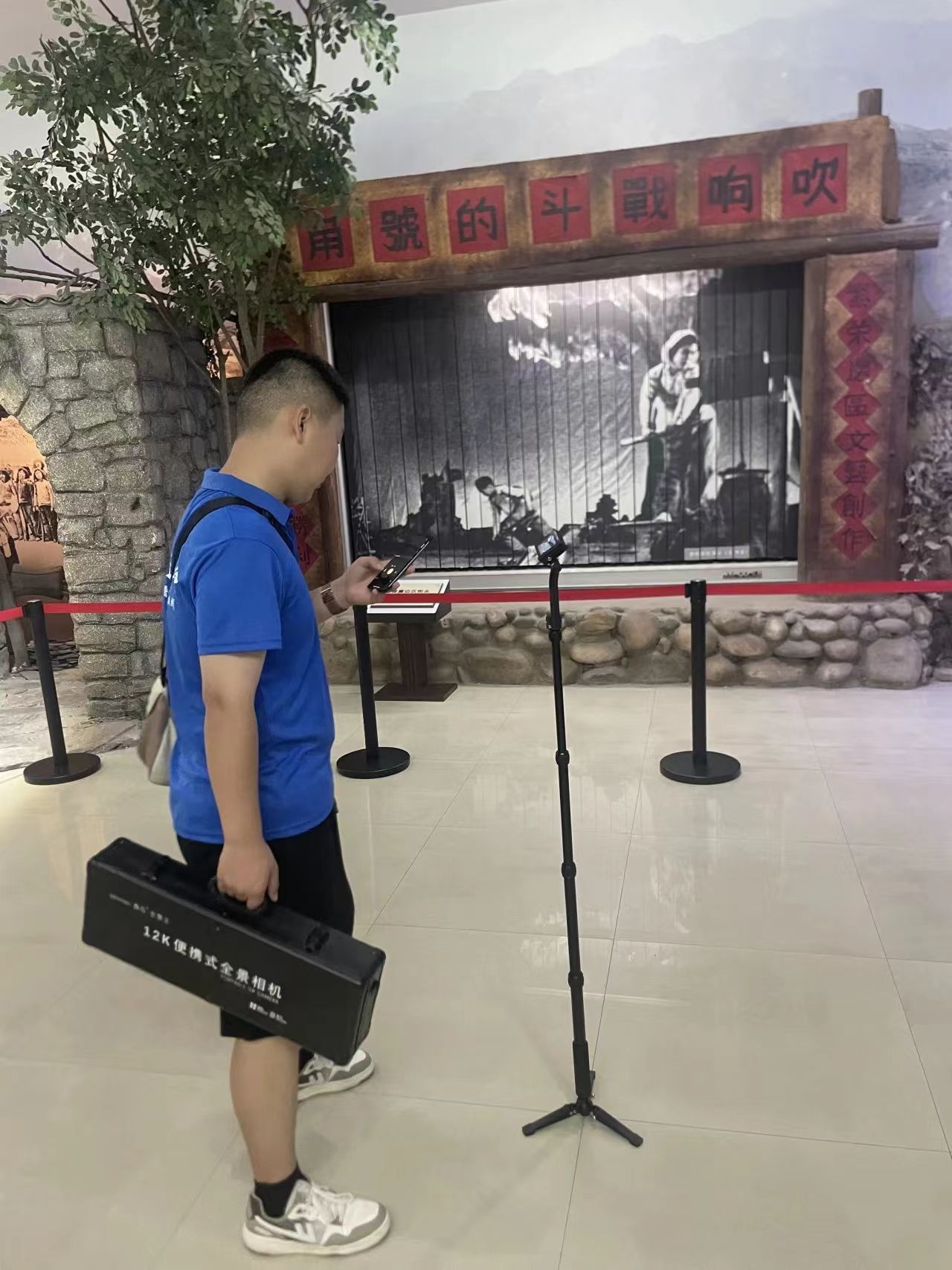 在活动中,实践队员使用全景相机对曹火星纪念馆进行取景。在专业的图像处理与虚拟现实技术支持下,通过后期的合成,将曹火星纪念馆以全景的效果展示出来。