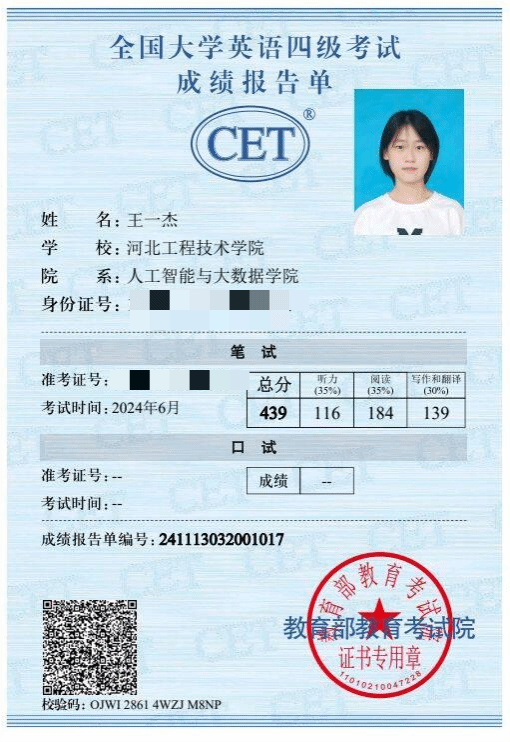 2023年国家励志奖学金、2024年国家奖学金、2023年校级二等奖学金、2024年三好学生、2024年共青团kaiyun官方网站入口——资助之星、社区优秀志愿者。