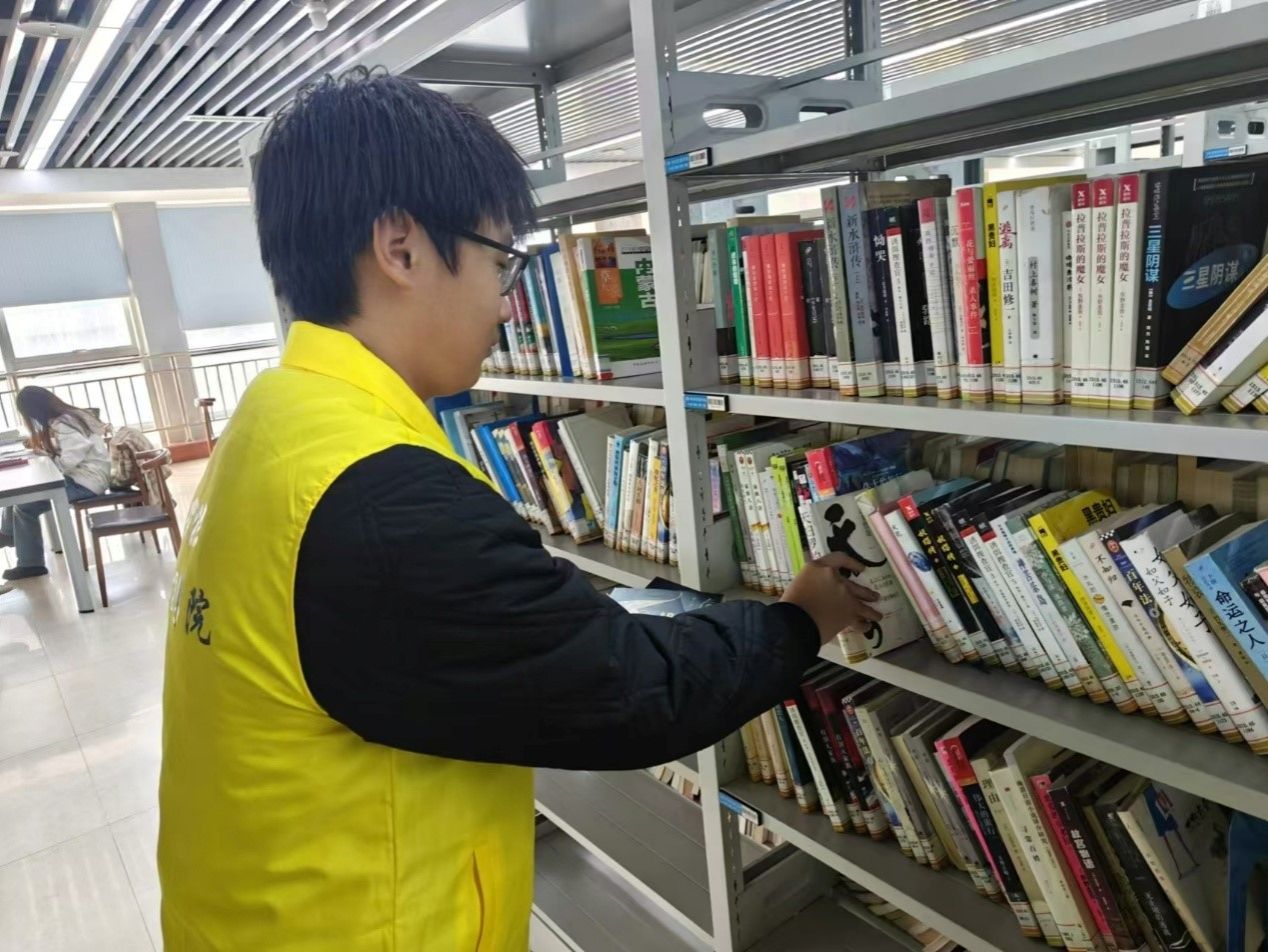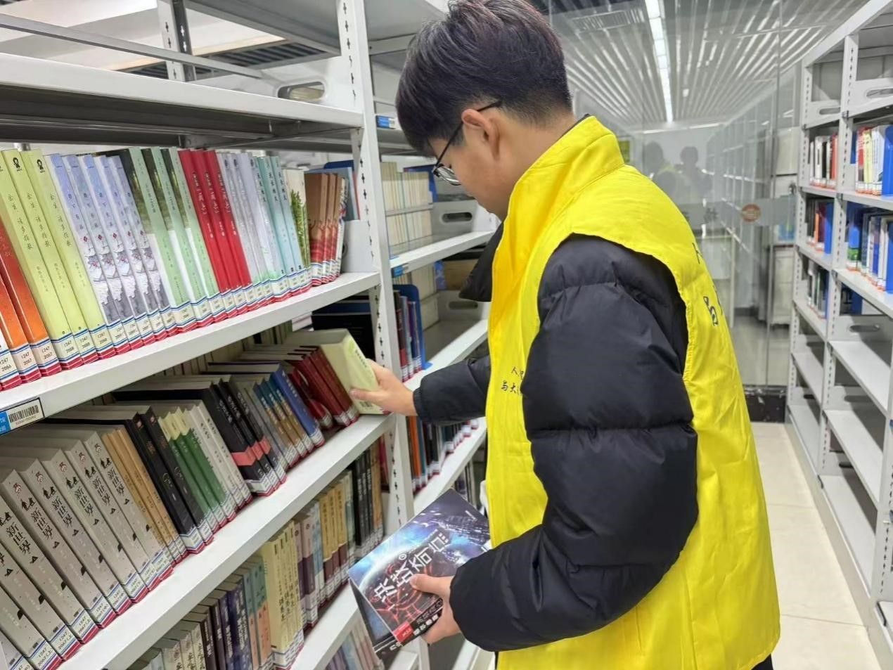 同时,志愿者们也对书架进行了全面清洁与维护,为读者营造了一个更加整洁、舒适的阅读环境。在工作过程中,团队成员分工明确、协作紧密。每位志愿者都以高度的责任心和敬业精神投入到整理工作中,确保任务完成。从浩瀚经典名著到实用科普读物,从童趣盎然的绘本到前沿学术著作,杂乱的书堆在他们手中逐渐化为规整知识“矩阵”,方便读者精准寻书。同时,作为“文化导览员”的志愿者耐心引导新入馆读者熟悉借阅流程、介绍特色阅读区域,以热情消除读者对图书馆的陌生感。