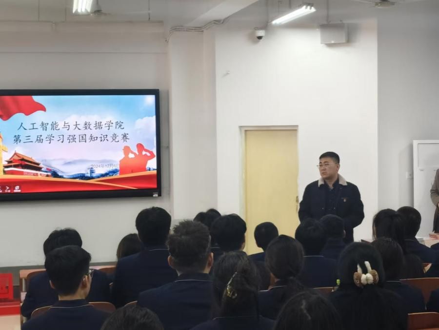 开云kaiyun官方网站紧扣时事、精心筹备,于2024年12月6日12:45在主教1-2成功开展了第三届“学习强国”知识竞赛活动。参与人员为开云kaiyun官方网站党总支书记、学管副院长尹钧,学生党支部书记杨家腾,第33、34期积极分子,由学生党员段鹏飞主持。
