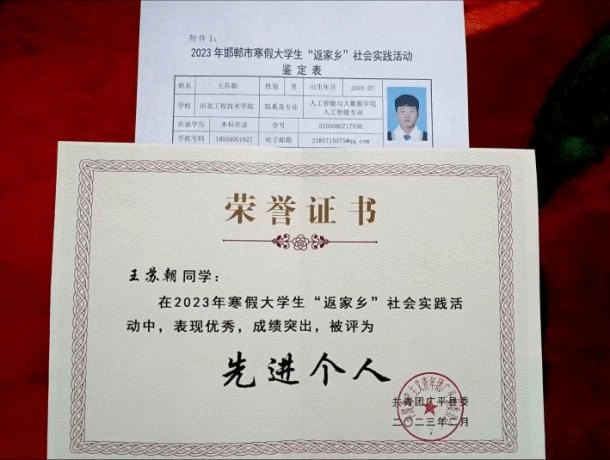 习近平总书记强调,“未来属于青年,希望寄予青年,青年之于党和国家而言,最值得爱护、最值得期待。”在2024年-2025年寒假,王苏朝第三次投身于大学生返家乡社会实践中。“返家乡”社会实践是了解国情、认识县情、增长本领的最好课堂,是磨炼意志、汲取力量的火热熔炉,是理论联系实际、从校门走向社会的生动实践。