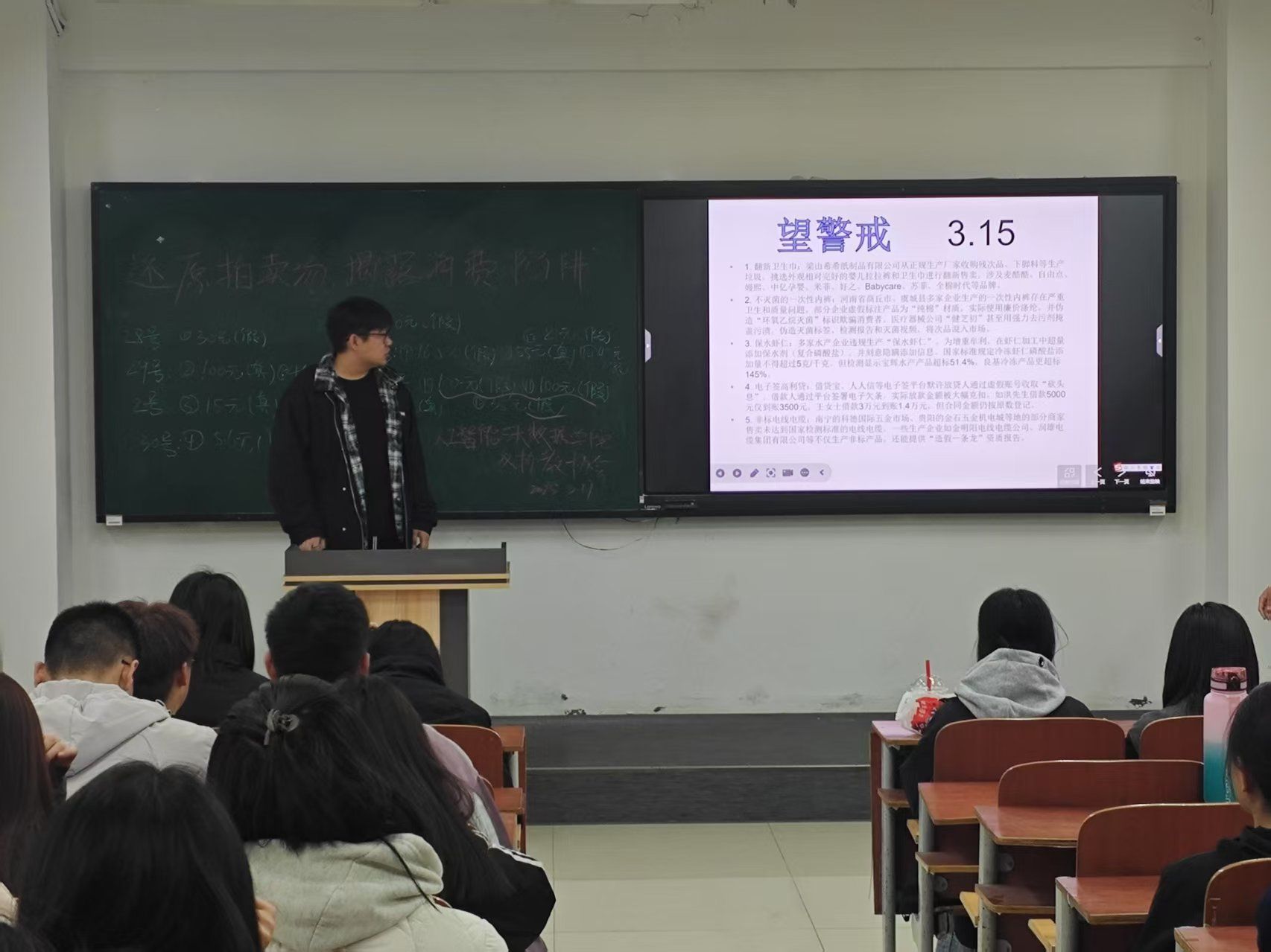 此次活动以3月15日消费者权益日为背景,伴随着工作人员发放精心准备的卡片以及主持人的深入浅出的讲解,为这场属于自己消费权益的活动拉开帷幕。随即,一场火药味十足的竞拍角逐火热展开,“商家”、“抬价者”与“消费者”分为两方阵营进行斗智斗勇,“消费者”们时刻保持警惕,在敏锐鉴别虚假宣传、小心避开合同陷阱的同时,也对无厘头的加价行为加以警惕,在重重阻碍中努力捍卫自己的消费权益,并在竞拍结束后精准找出隐藏其中的消费欺诈手段和“抬价者”,将活动气氛推向高潮。隐匿在日常消费场景里的欺诈手段,不再是枯燥的文字描述,而是以生动鲜活的案例,真切地展现在参与学生眼前。所有物品竞拍完毕后主持人对活动进行全面总结,再次强调消费者权益保护的重要性,鼓励学生们在日常生活中增强维权意识,要及时运用合法手段维护自身权益。