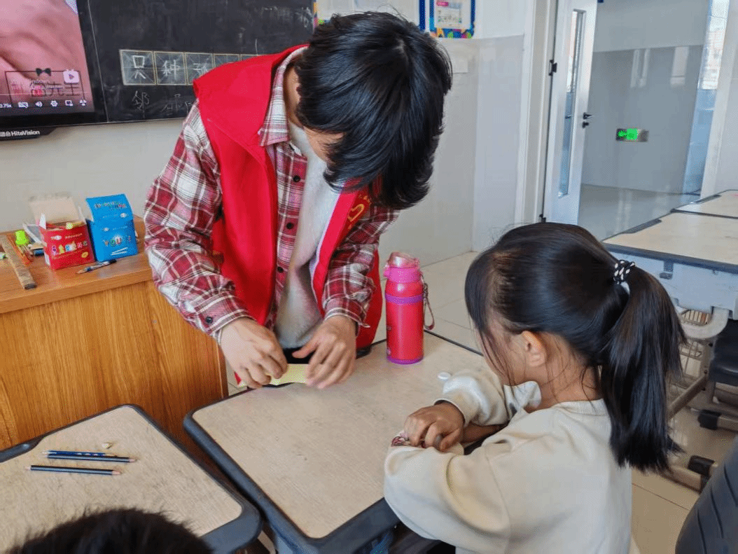 在红旗大街小学,志愿者们针对孩子们在学科知识上的薄弱环节,进行一对一学业辅导。志愿者以认真负责的态度,帮助孩子们梳理数学难题的解题思路,纠正语文写作中的错误,培养他们良好的学习习惯。