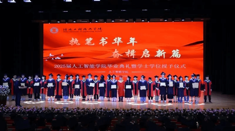 在这场充满意义的毕业仪式里,师者的话语成为动人注脚。教师代表李震老师,以诗意发言传递期许:“同学们,你们恰似即将奔赴广阔天地的AI工程师,母校为你们编写的‘初心代码’,早已悄然植入人生底层逻辑。”他勉励大家在技术浪潮迭代中,莫忘“修德凝道”的精神底色,让专业成长与品格养成并行不悖。辅导员代表樊旭恒老师,则以“家长式”叮嘱触动全场:“要记得按时吃饭,别总为逐梦亏待身体;更要记得,无论何时遇到困难,给母校打个电话,我们永远是你们最坚实的‘技术支持’。”这些话语,褪去华丽,满是朴素牵挂,成为毕业生未来路上难忘的心灵锚点。