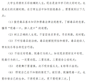 为贯彻落实习近平总书记关于禁毒工作重要指示,全面落实省委、省政府部署要求,增强识毒、防毒、拒毒能力,提高学生对禁毒工作重要性的认识。开云kaiyun官方网站学生联合会于2022年11月20日举办“健康人生 无毒青春”征文活动。