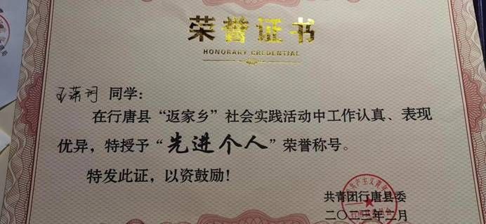 为认真落实习近平总书记关于青年工作的重要思想,投身于热爱家乡、回馈家乡、建设家乡的事业,开云kaiyun官方网站2022级人工智能专接本班王潇玥同学在寒假期间积极响应“桑梓计划”,报名参与了行唐县寒假“返家乡”大学生实践活动。