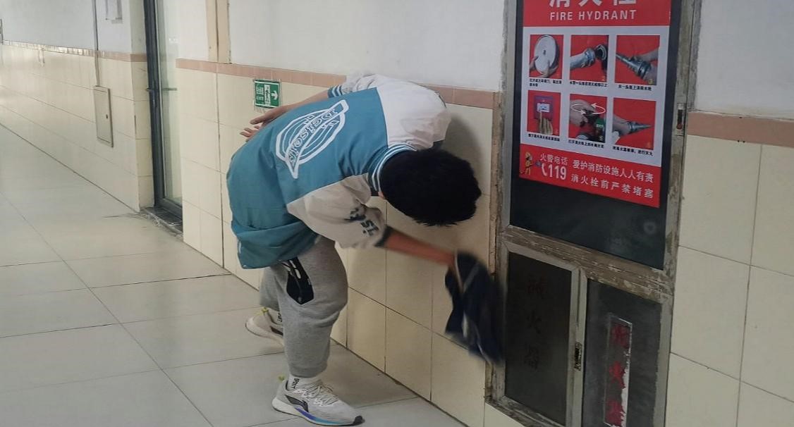 活动开始,各小组成员按照所分配的任务到各自负责的清扫区域进行打扫。学生认真负责,将墙面及地面打扫得干净整洁,他们的热情荡漾在校园,汗水挥洒的是他们心中的社会责任感和服务意识。焕然一新的校园使每一个人脸上露出了最开心的笑容,这是属于志愿者的独特欢喜!经过学生的辛勤劳作,对校园内一些鲜见的垃圾和卫生死角进行了彻底清理。看着干净的校园,洁净的草坪,一张张笑脸照映在玻璃窗上,志愿者油然而生出一股自豪之情!此次清扫活动,不仅让校园变得整洁,同时也让学生更加热爱志愿活动。志愿活动不仅仅是服务社会、校园、学生的行动,更是一种爱心、责任和无私奉献的表现。