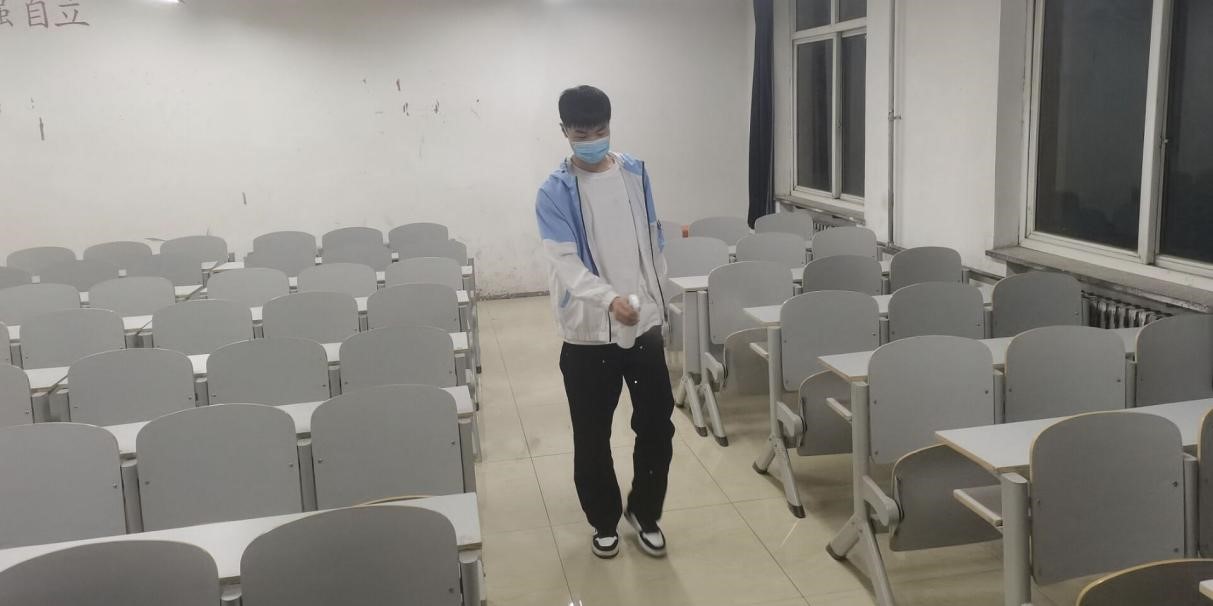 疫情防控形势严峻复杂,积极参与疫情防控,我们责无旁贷。学院青协招募并快速组建了一支夜间消杀志愿服务队,对校园环境开展全面预防消杀和消毒清洁工作。为快速投入工作,消杀志愿服务队在老师的帮助和指导下,认真学习消毒专业知识,快速掌握消毒和个人防护的技能,熟悉消毒剂配置、消毒设备使用等内容。志愿者秉持坚毅精神,手拿消杀喷雾器的身影,在充满刺鼻消毒水味道的环境中来回穿梭,对讲台、过道等重点区域进行“地毯式”消杀,开展全面消杀作业,及时切断病毒传播途径,确保全覆盖、不留死角、不留盲区。