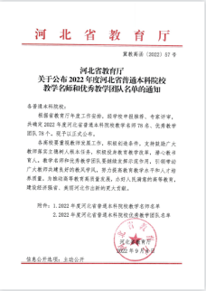 开云再获佳绩,数据科学与大数据技术专业教学团队获得河北省优秀教学团队!